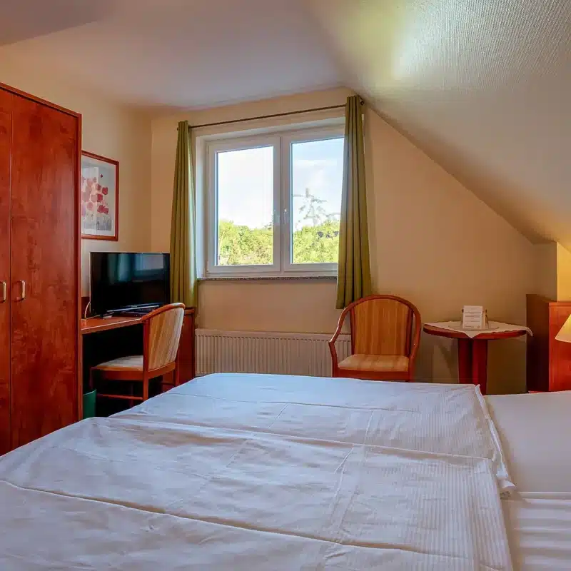 We also have two of our beautiful apartments (35-38 sqm) available for families. These large family rooms are equipped with a shared bathroom with shower and toilet. In addition, the room layout (two separate rooms) also ensures the desired privacy when staying overnight. The cheerful family can enjoy delicious Brandenburg home cooking in our own restaurant. Quality is very important to us, which is why we have joined the certified ‘ServiceQualität Deutschland’ programme.