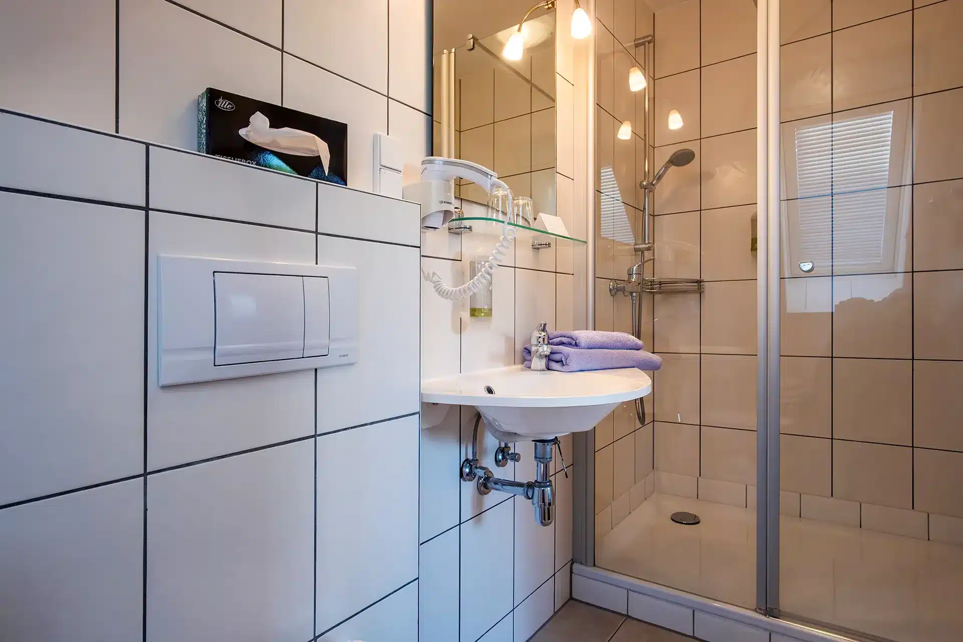 If you are a single person who appreciates a little more space, you can also book a double room (17-25 sqm) for your overnight stay. For couples and families, there are also 2 family rooms with 35-38 sqm or 2 apartments available. Our high quality standards are reflected, among other things, in our membership of the ‘ServiceQualität Deutschland’ programme. As a Bed+Bike hotel, we also warmly welcome enthusiastic cyclists.