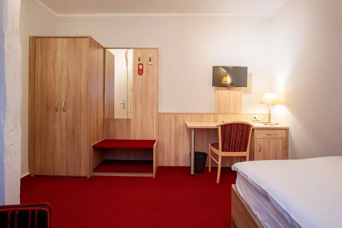 In our restaurant, you can start by filling up on traditional Brandenburg home cooking (also open on Saturdays and Sundays). After that, you can go to one of our 5 single rooms to relax and unwind. The single rooms, which are between 15 and 18 square metres in size, have a shower and toilet, as well as a TV and free Wi-Fi.